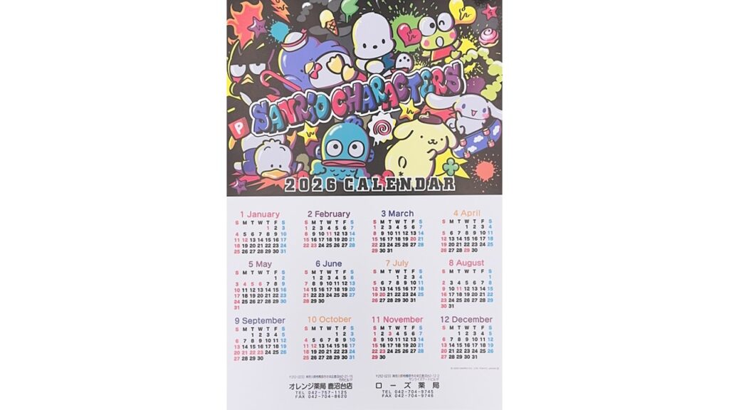 恒例のローズ薬局・オレンジ薬局のオリジナルカレンダー2026年バージョンが完成しました!