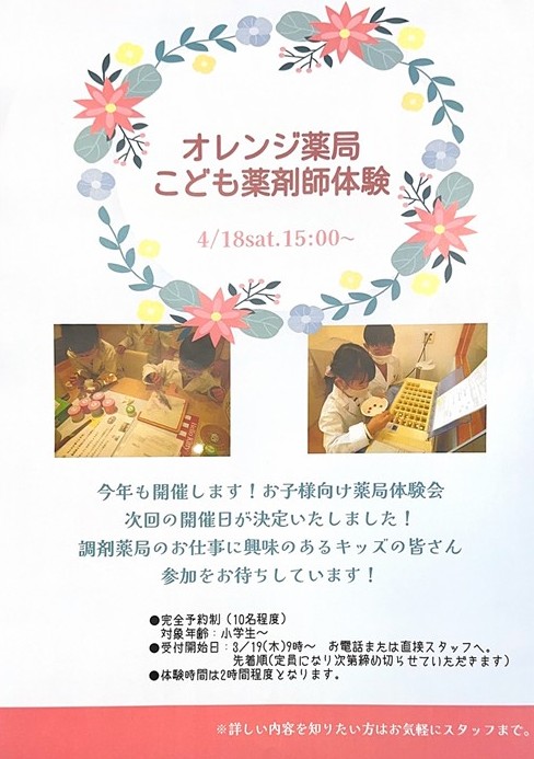 こども薬剤師体験開催します!